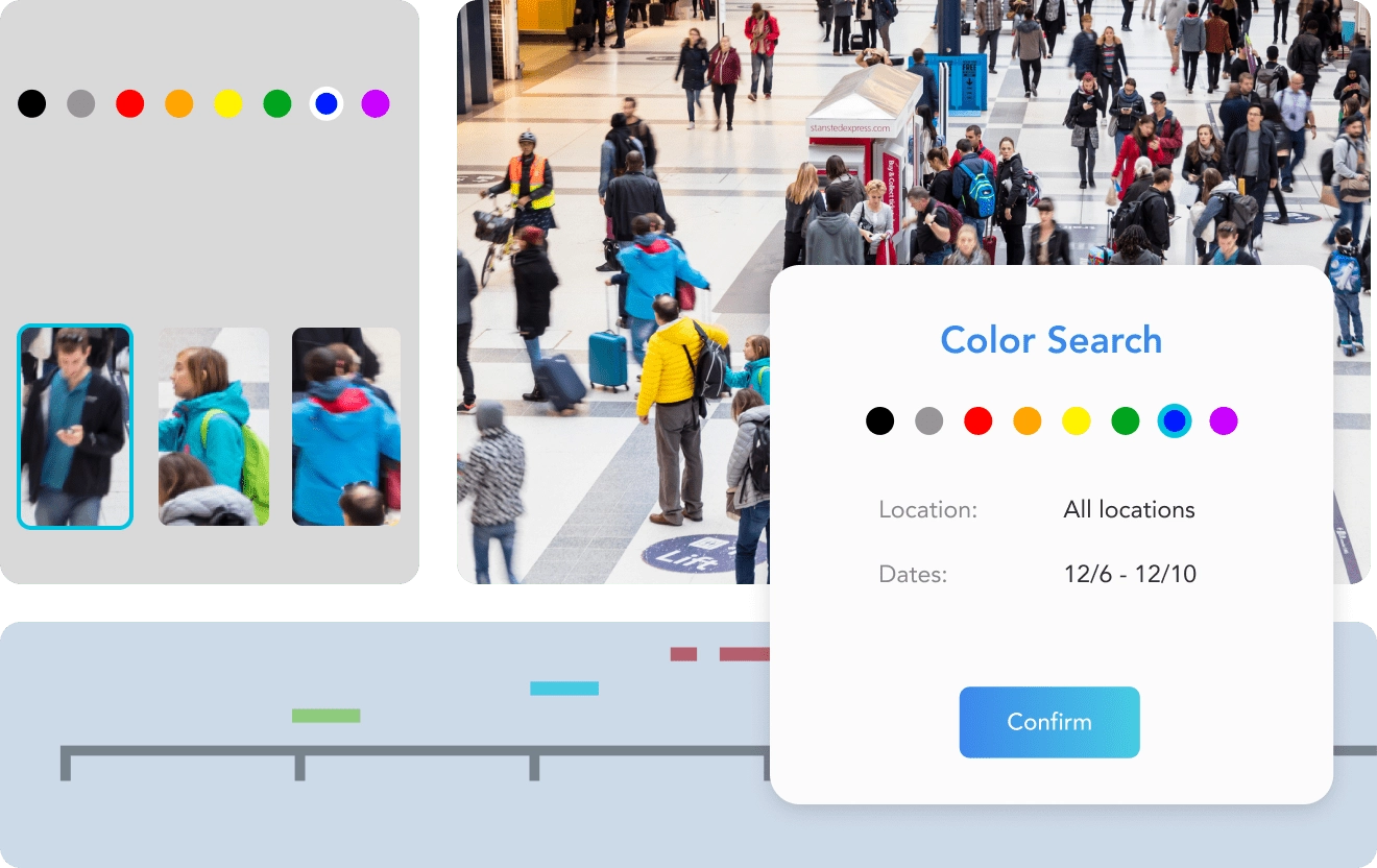 Speed up your searches and make investigations easier with smart search features. Automatically indexed events and multi-camera views let you quickly jump to important video segments, helping you find human movement, access events, and other activities fast.
