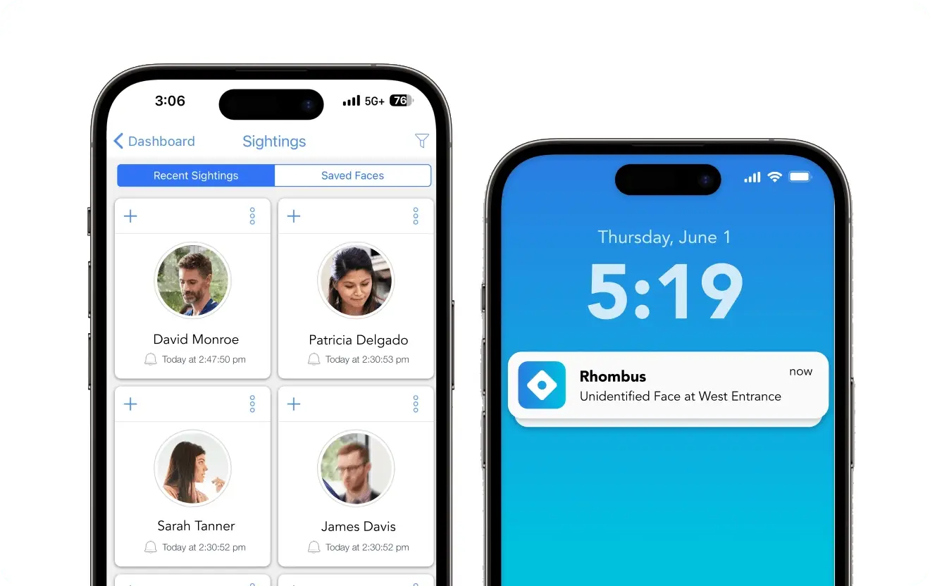 Stay mobile with your security monitoring. Use the Rhombus Mobile App to manage cameras and view footage right from your phone, perfect for patrols. Equip your entire team with access, as there are no user or device limits.